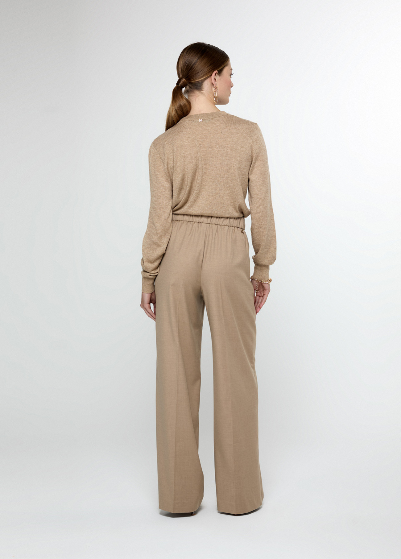 Calças largas com elástico e cordão na cinta,