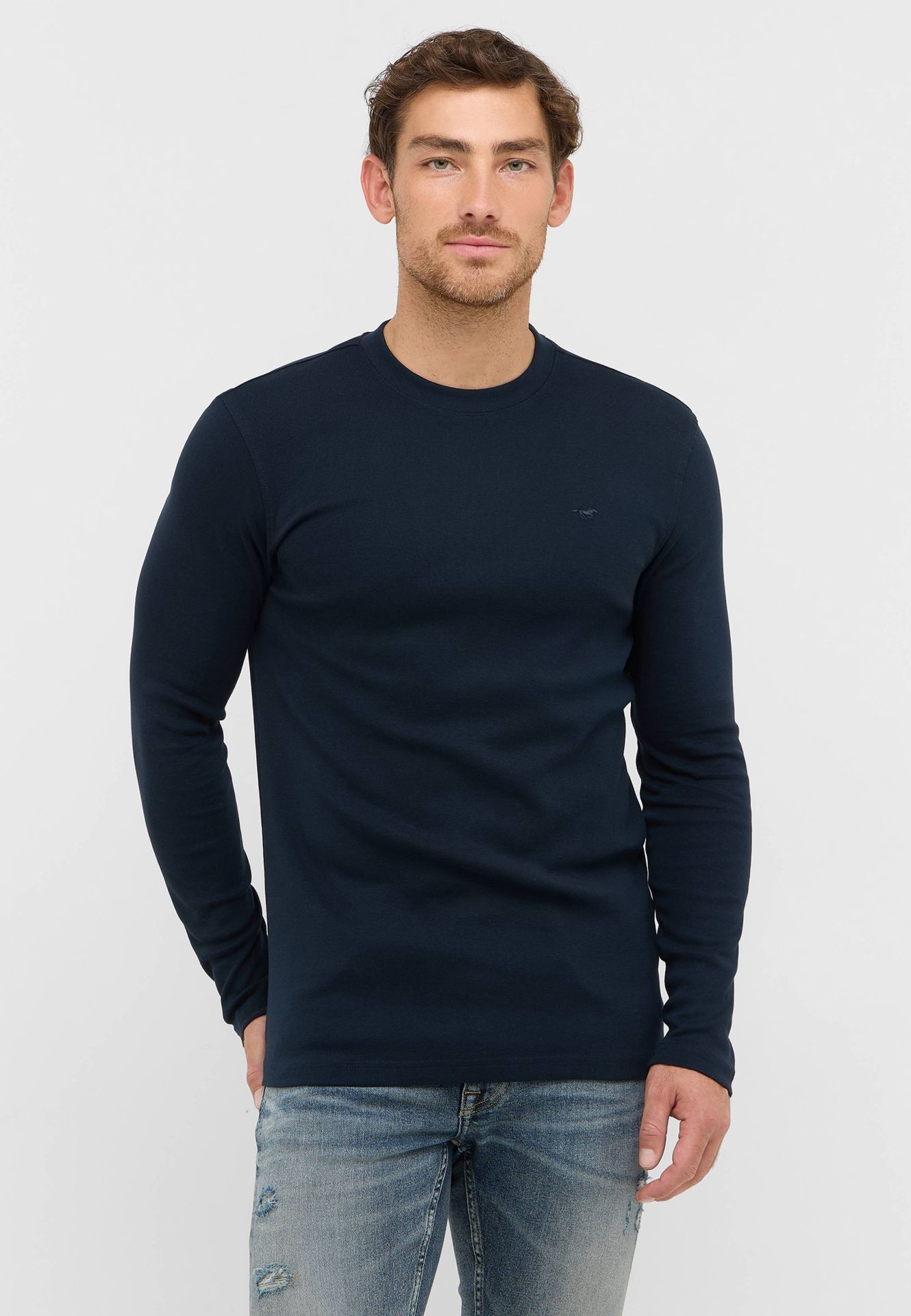 Camisola básica manga comprida, pormenor bordado do logo da marca