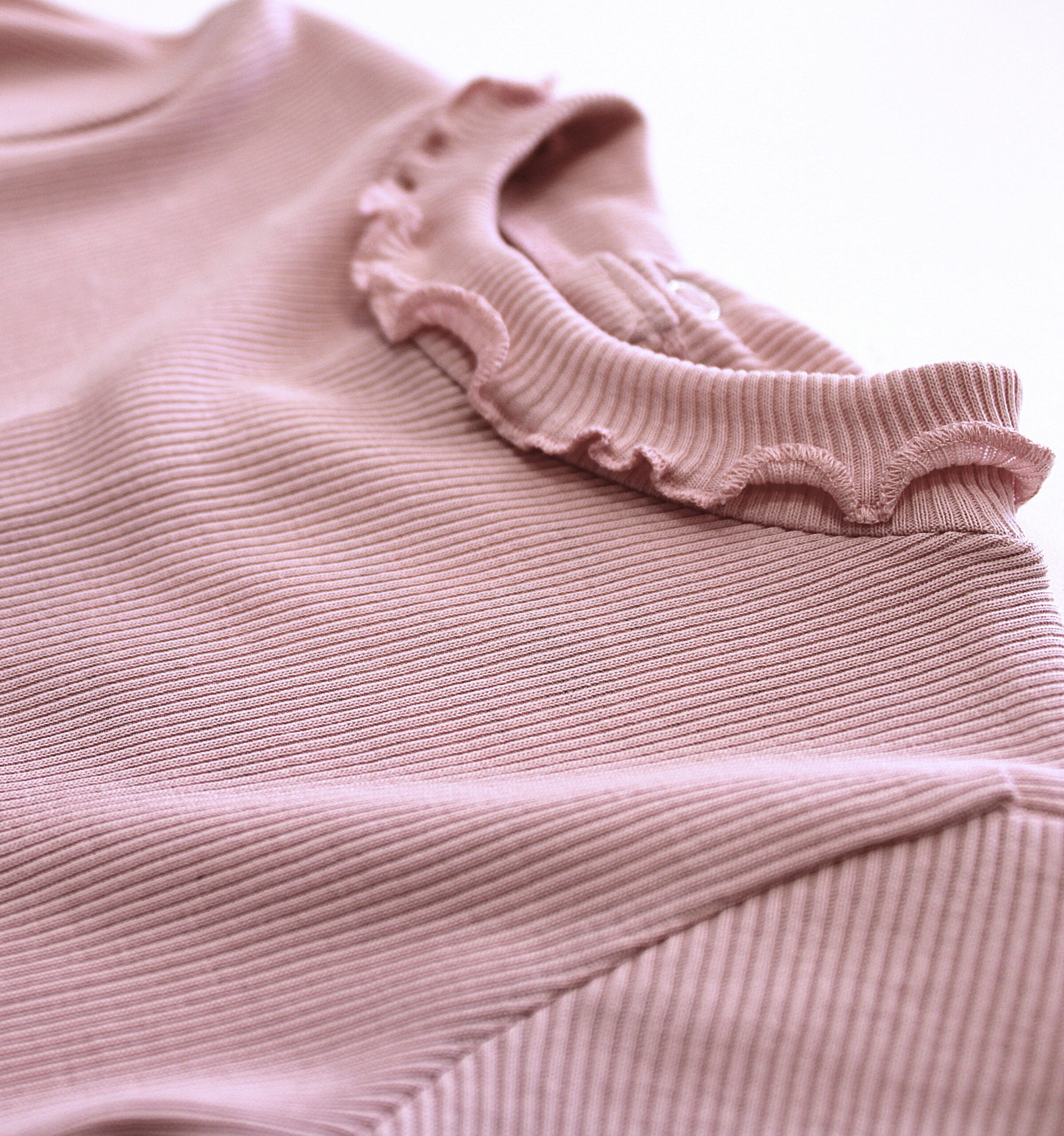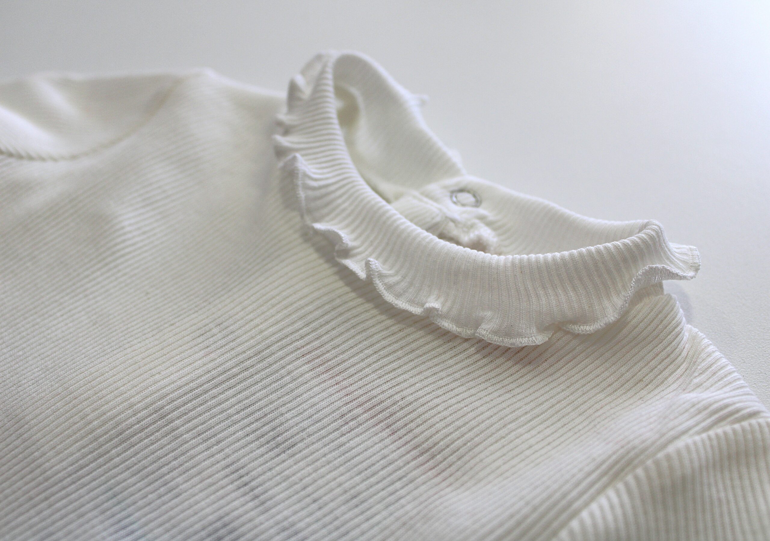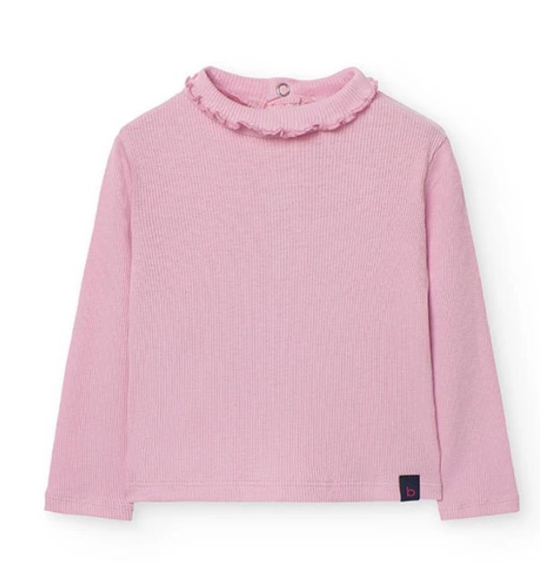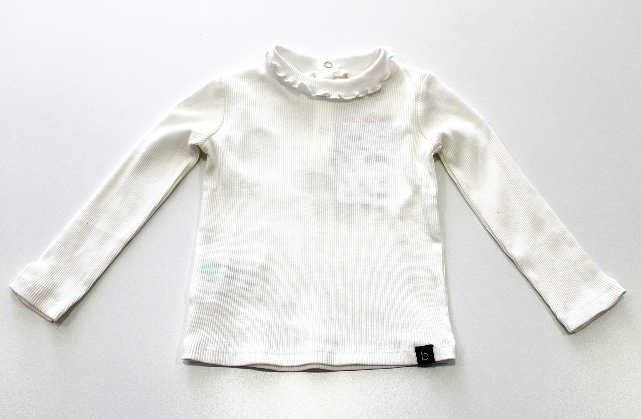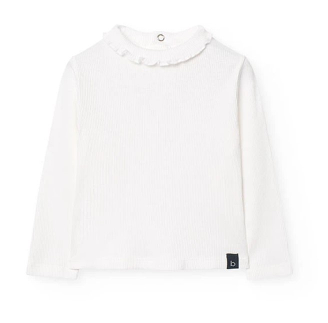 Camisola básica, canelada com pormenor de gola com folho.