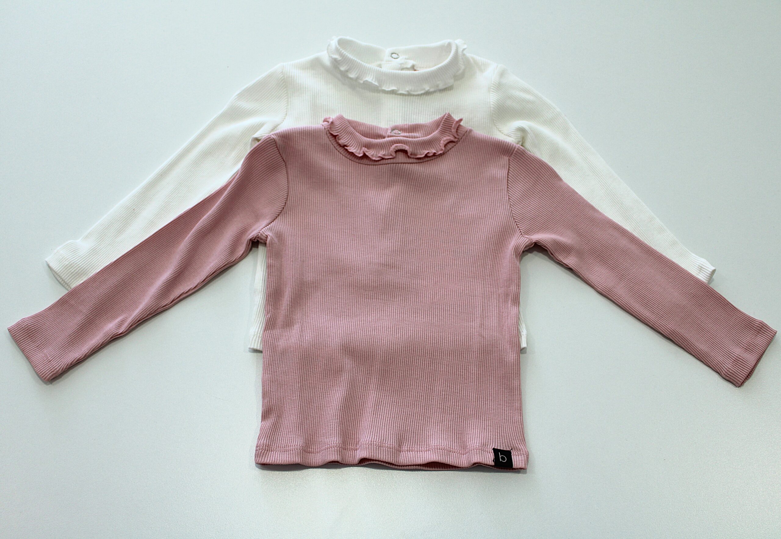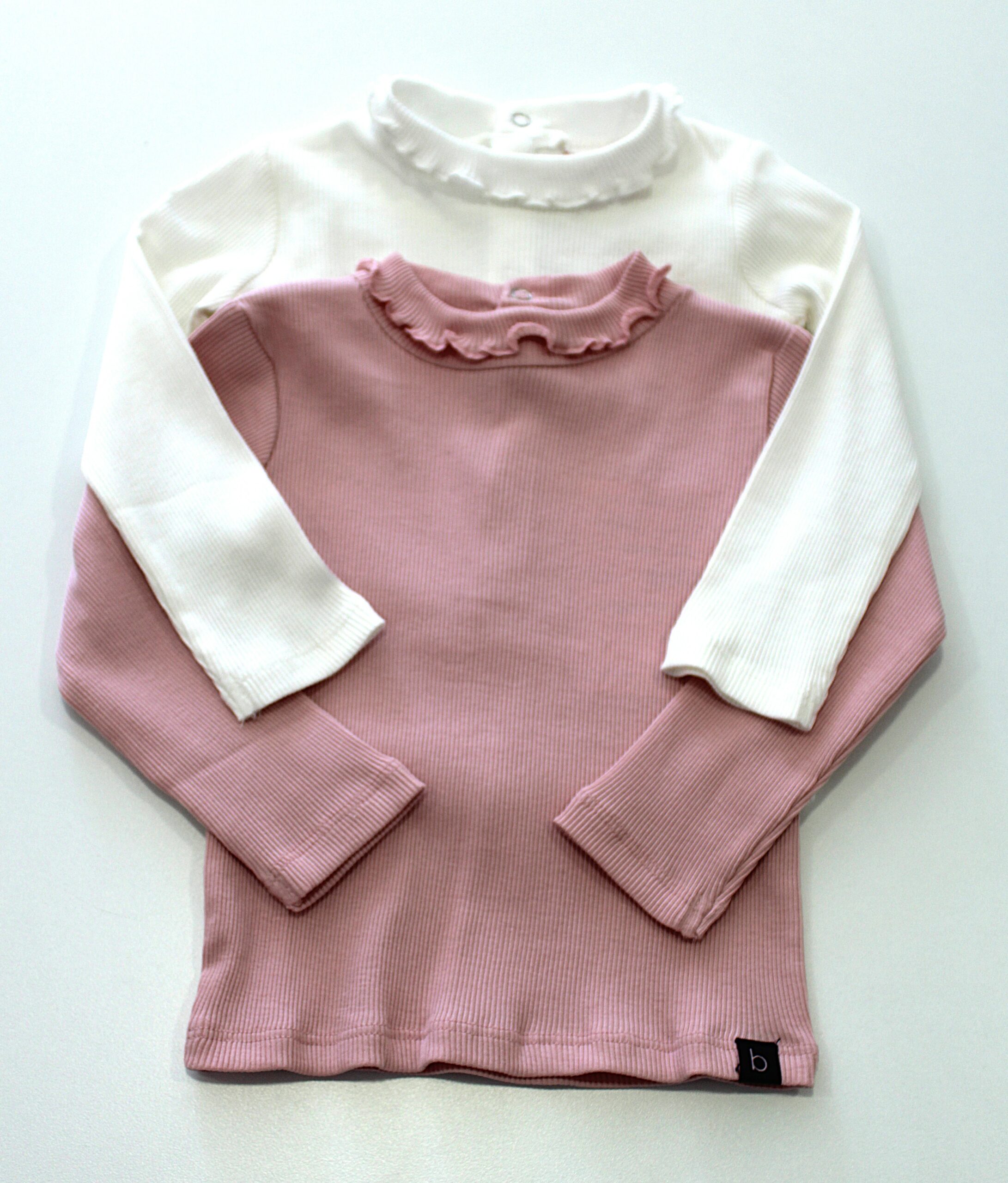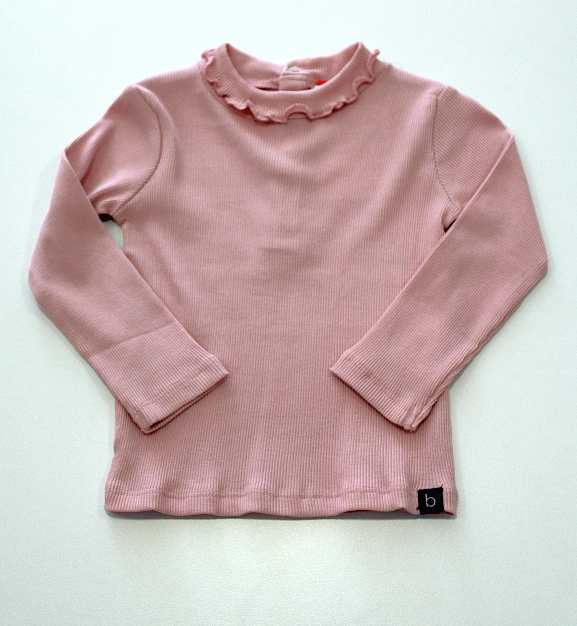 Camisola básica, canelada com pormenor de gola com folho.