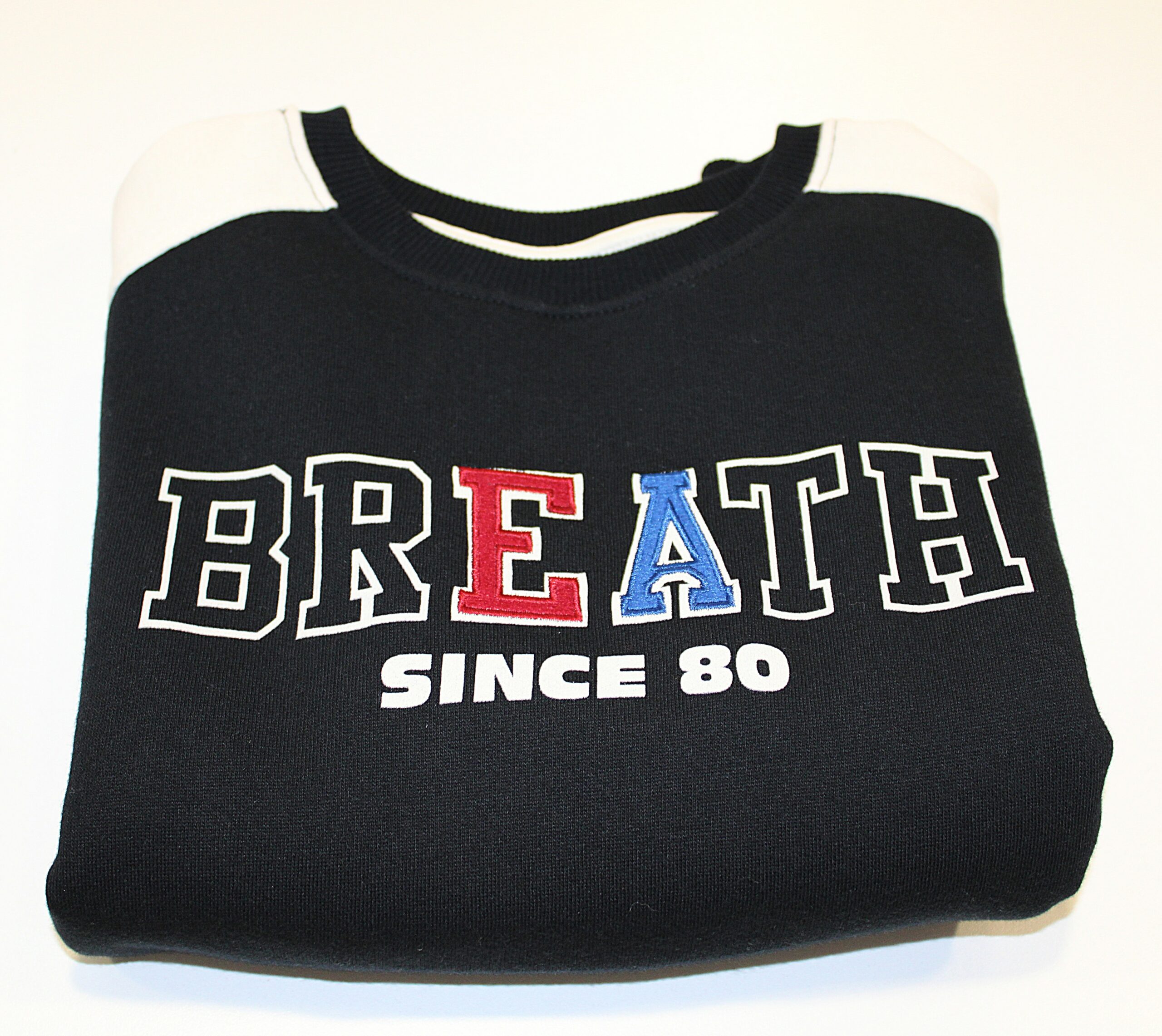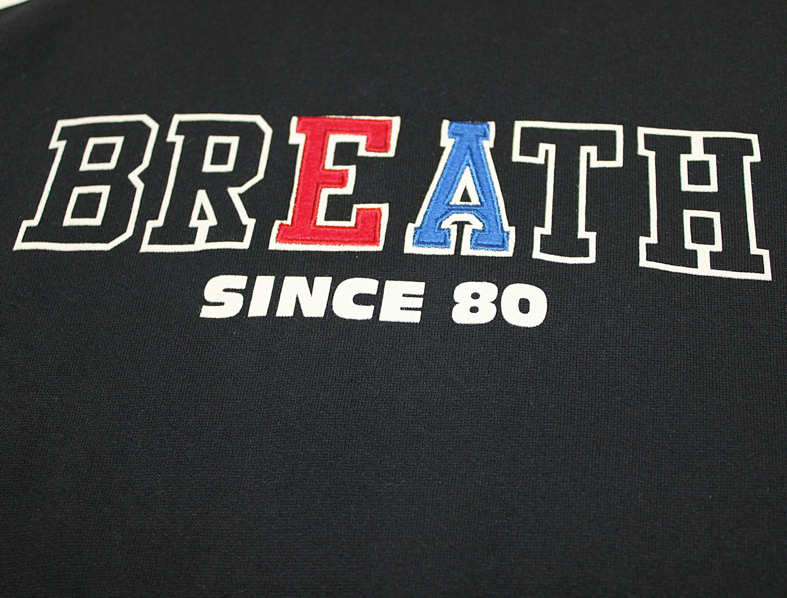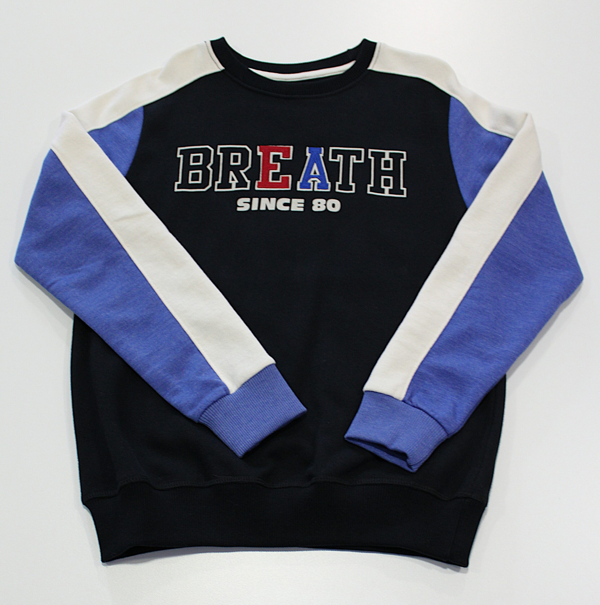 Camisola cardada, pormenor letras na frente ” BREATH “