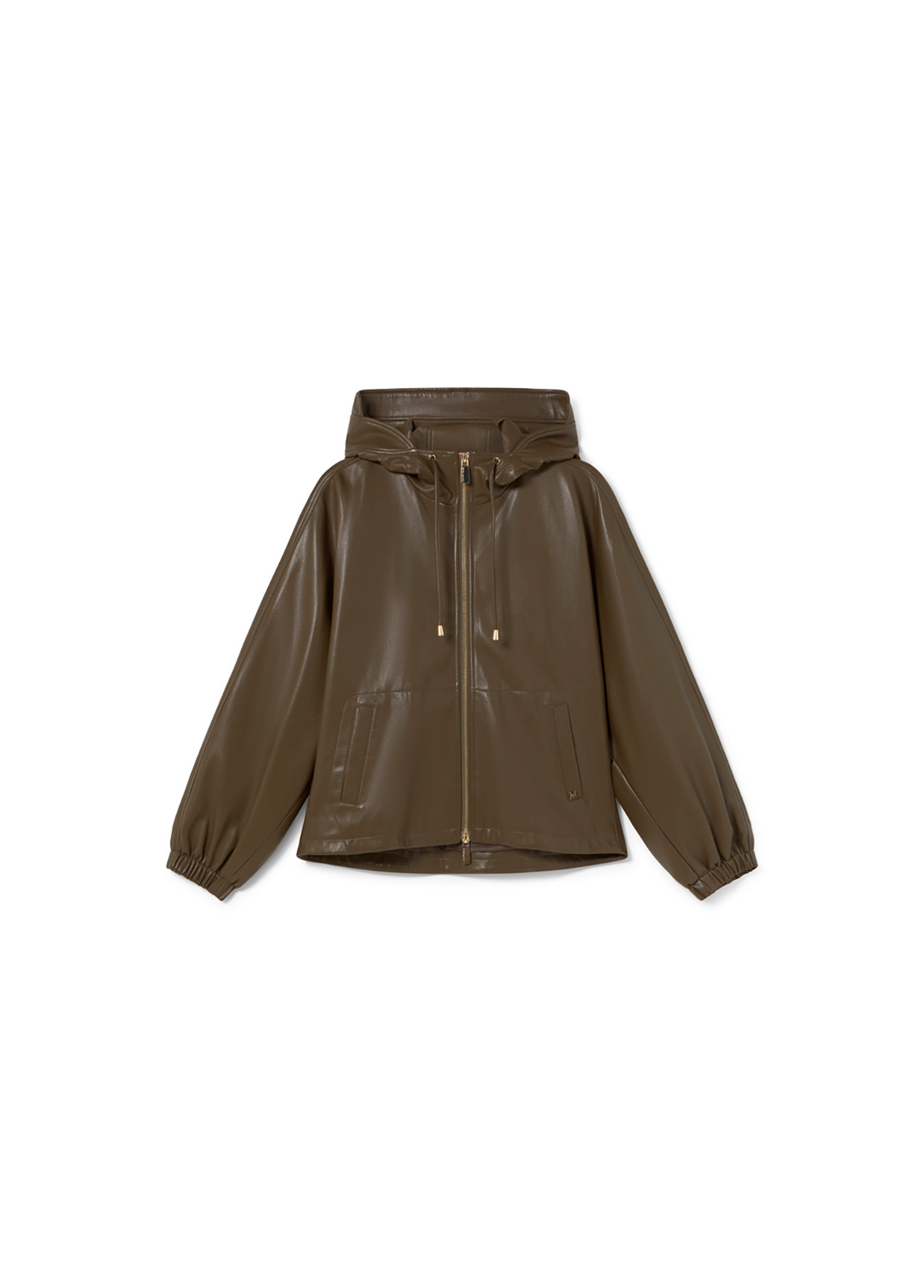 Casaco de ecopele, com capuz e bolsos