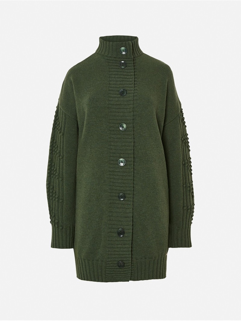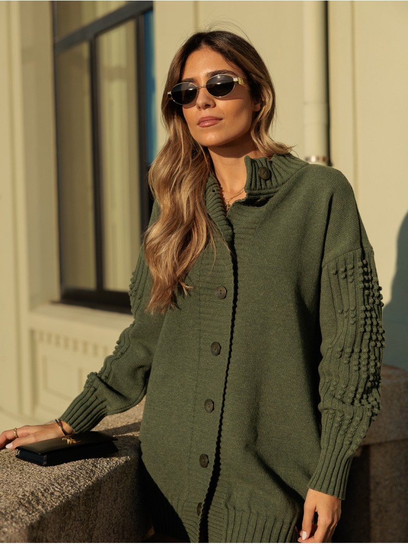 Casaco de malha com botões ao tom.