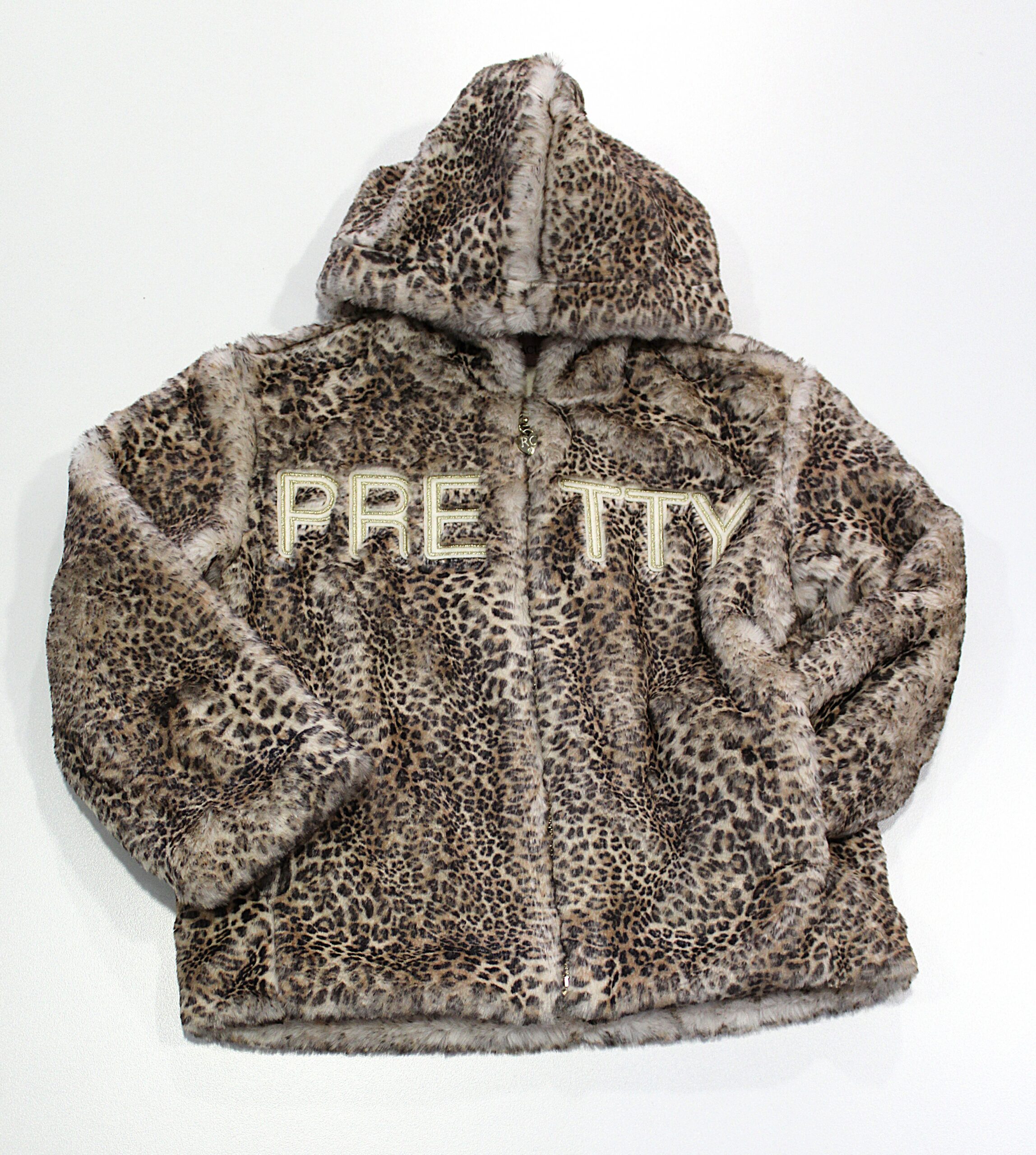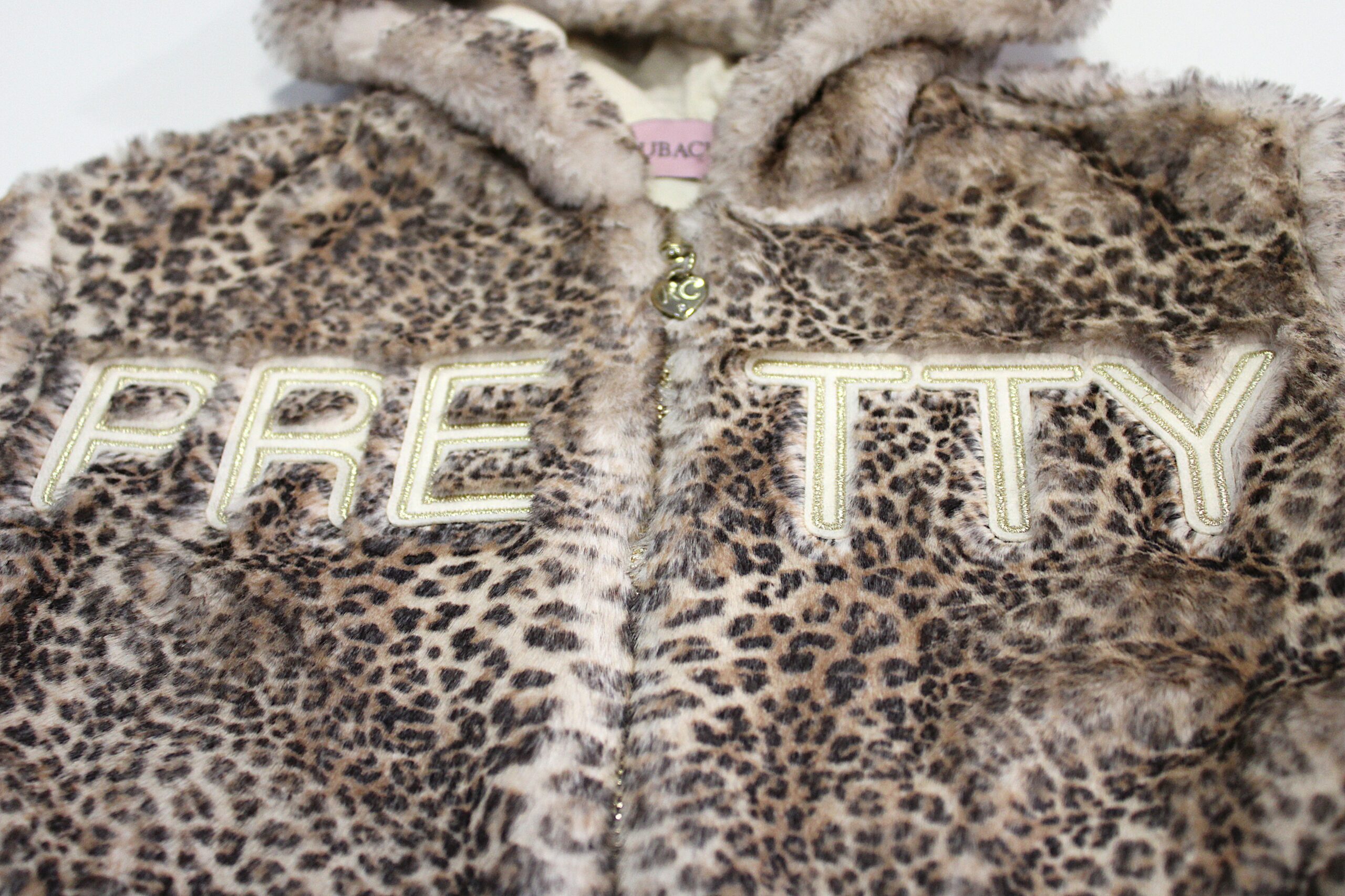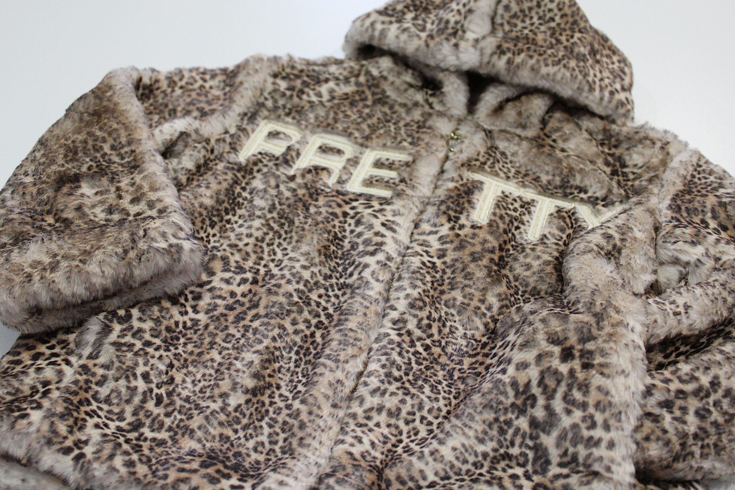 Casaco de pelo com estampa animal, com capuz e dois bolsos.