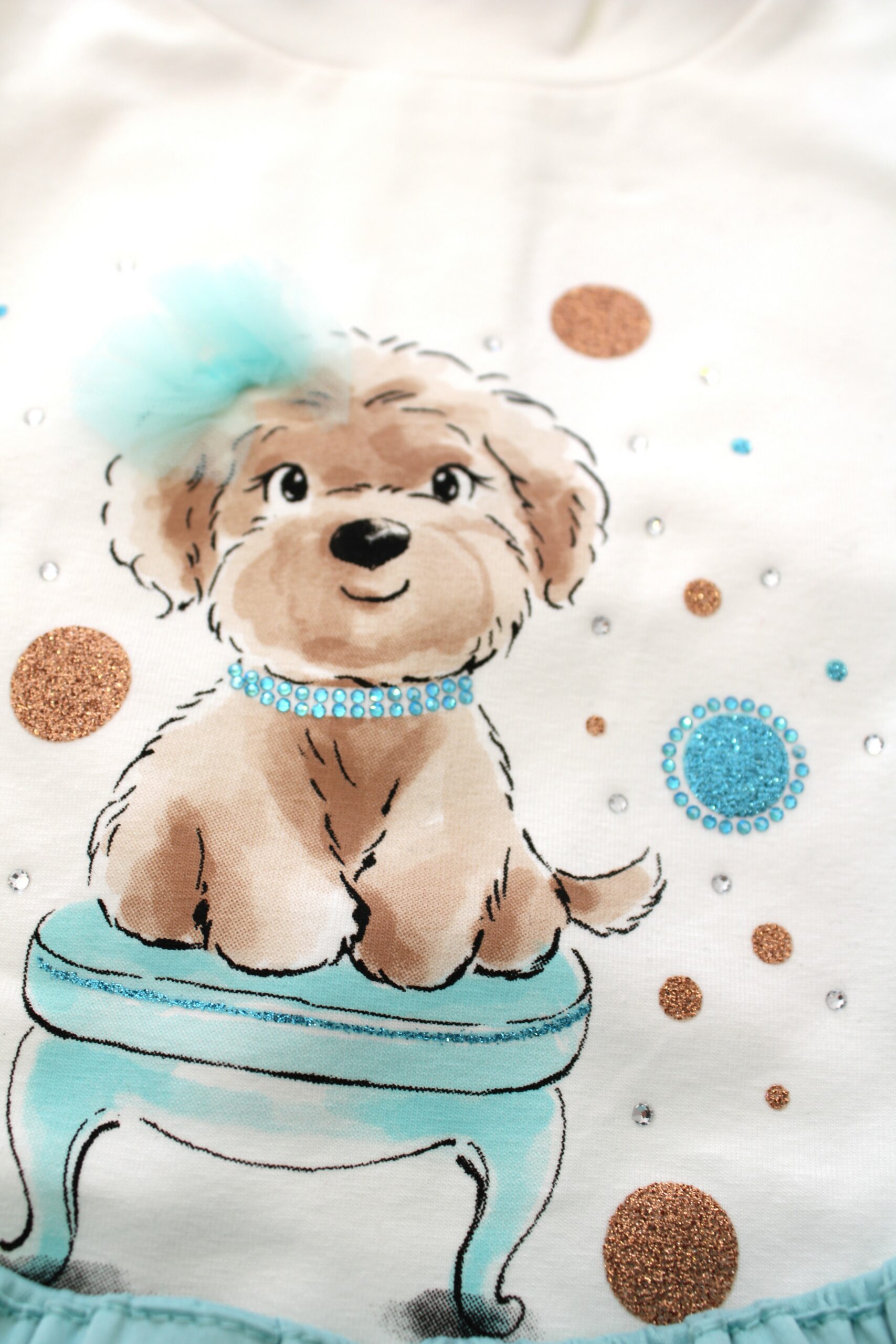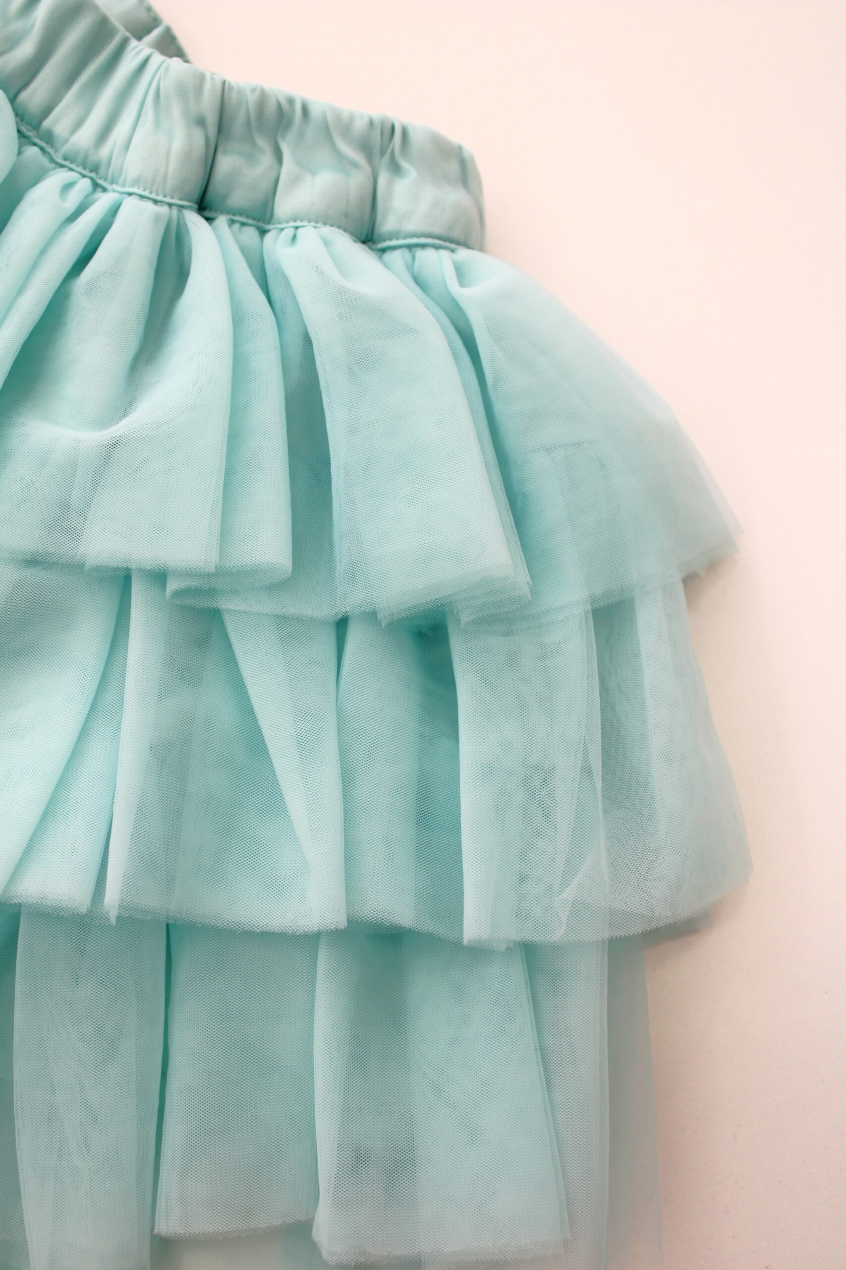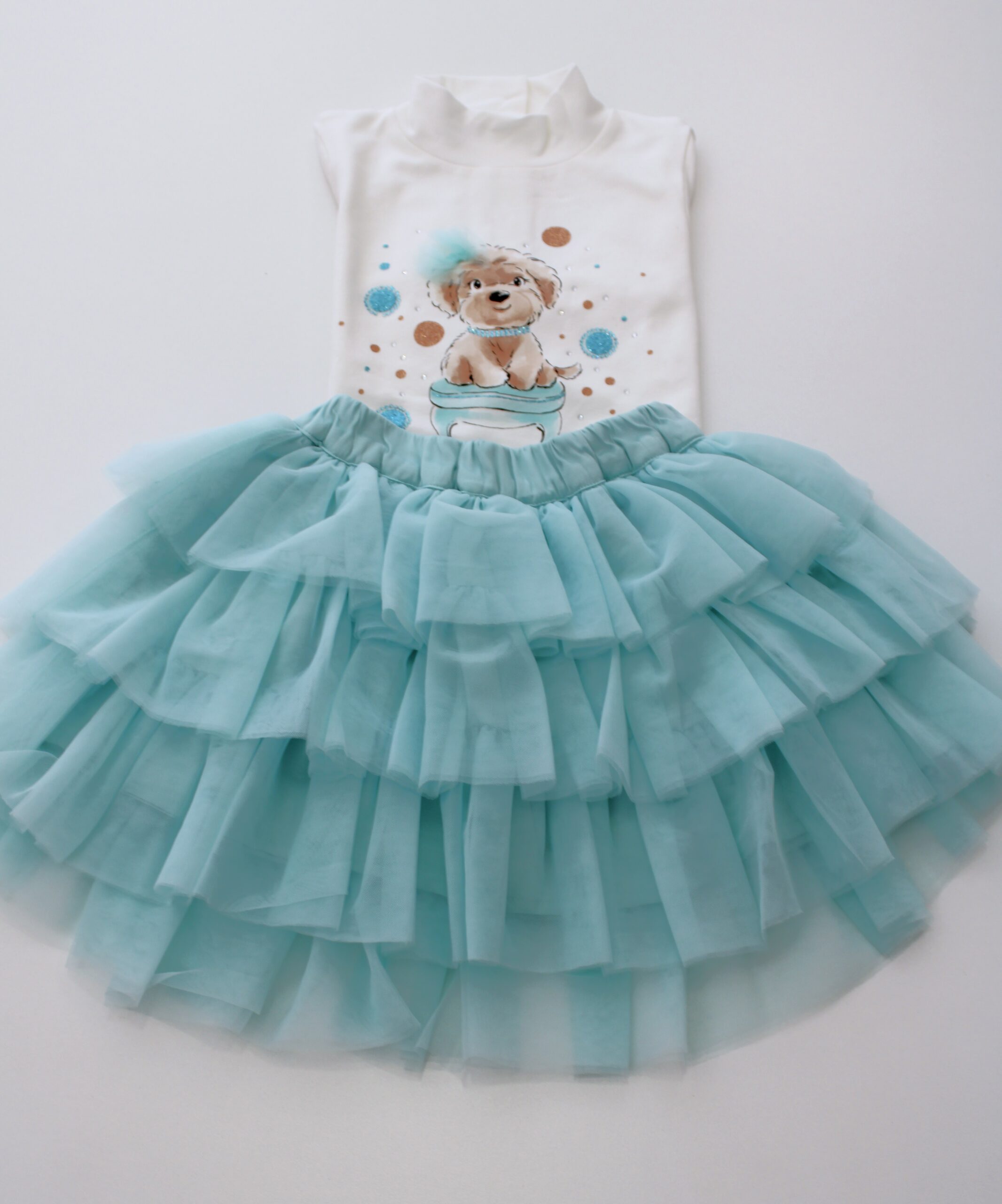 Conjunto de saia de tule, camisola de algodão e casaco de pelo macio.