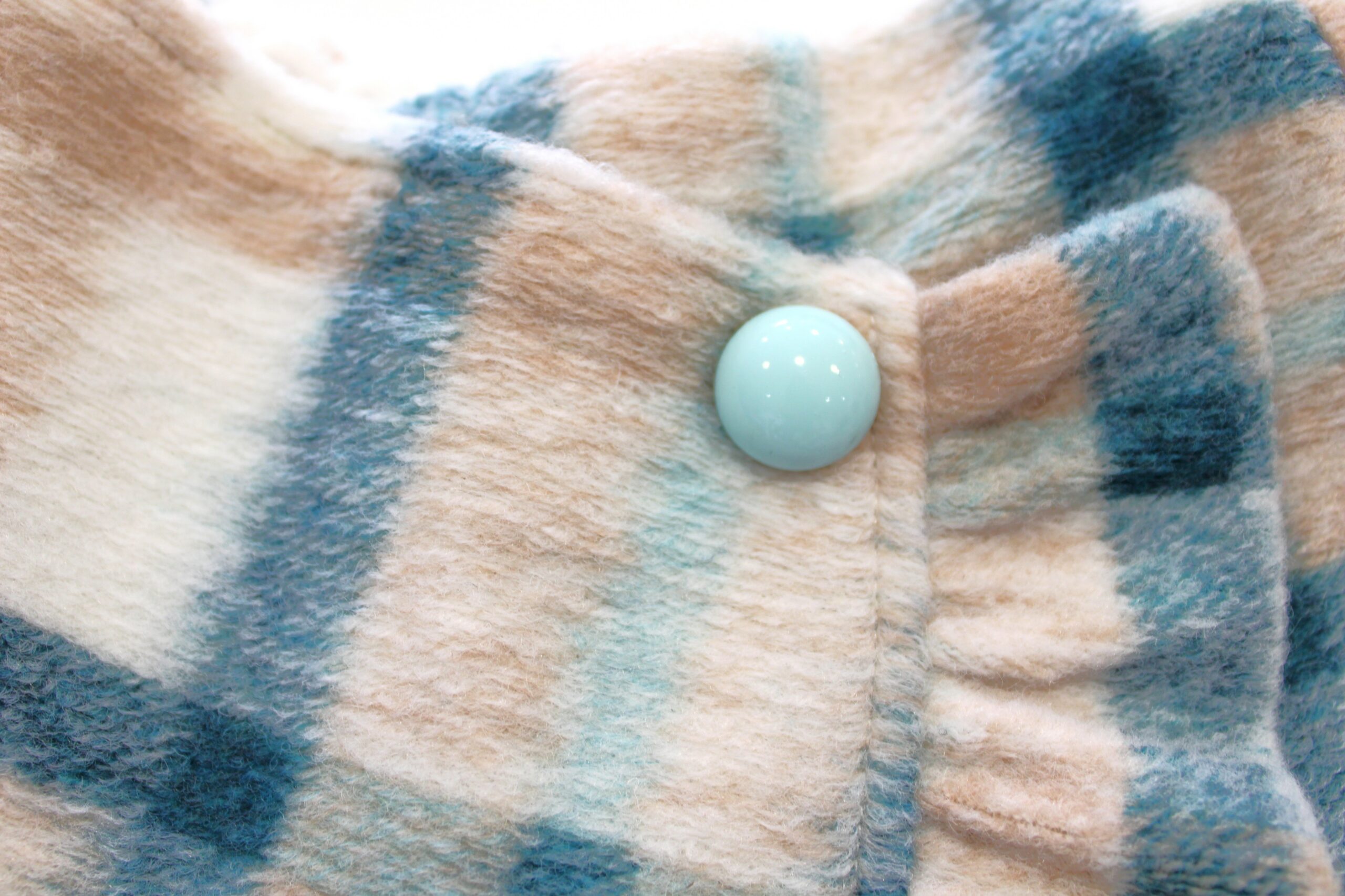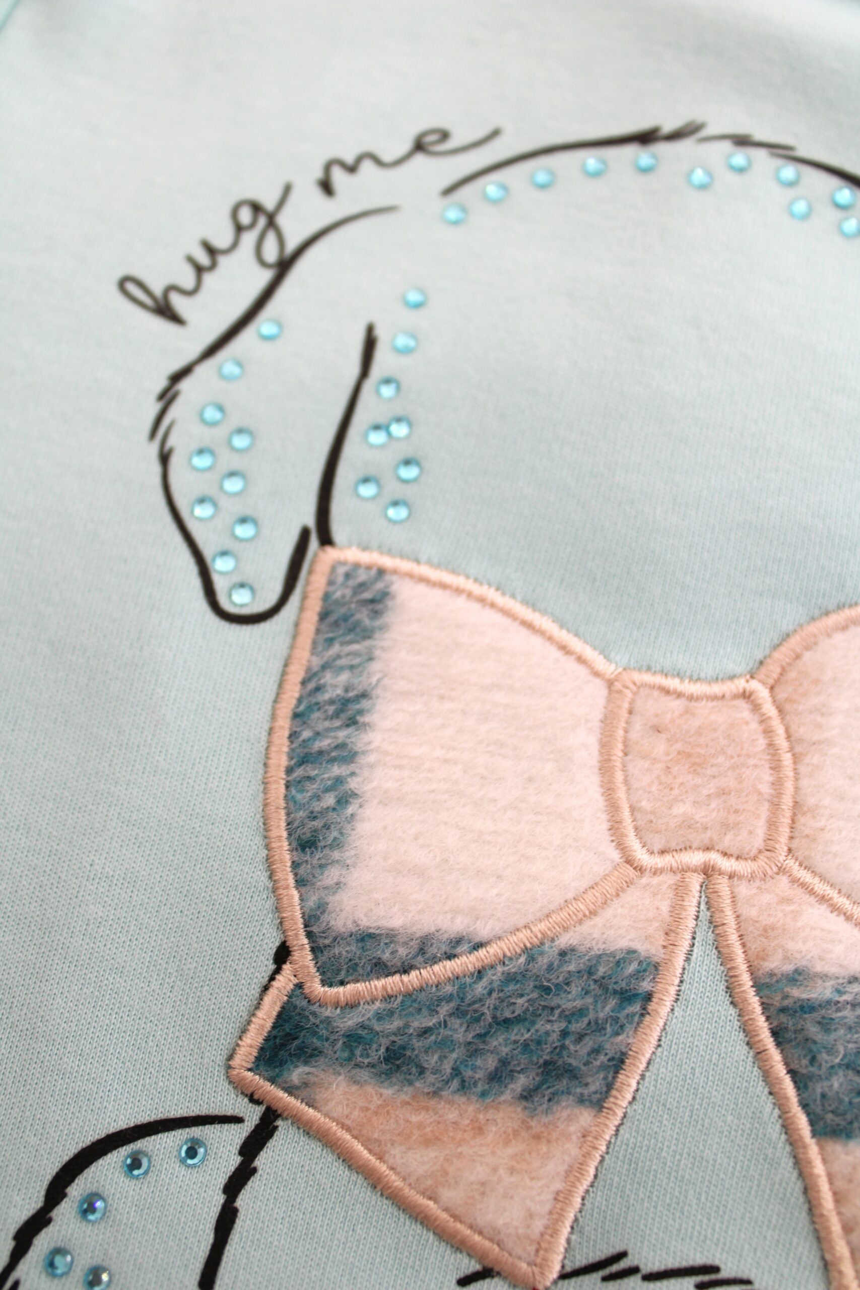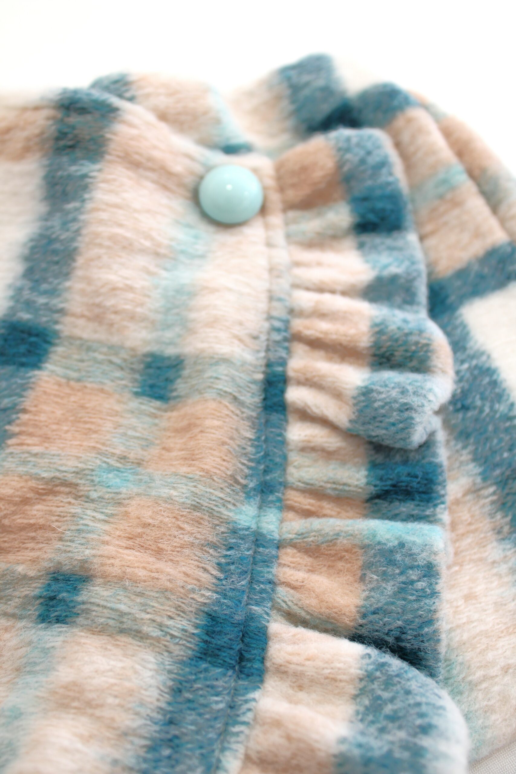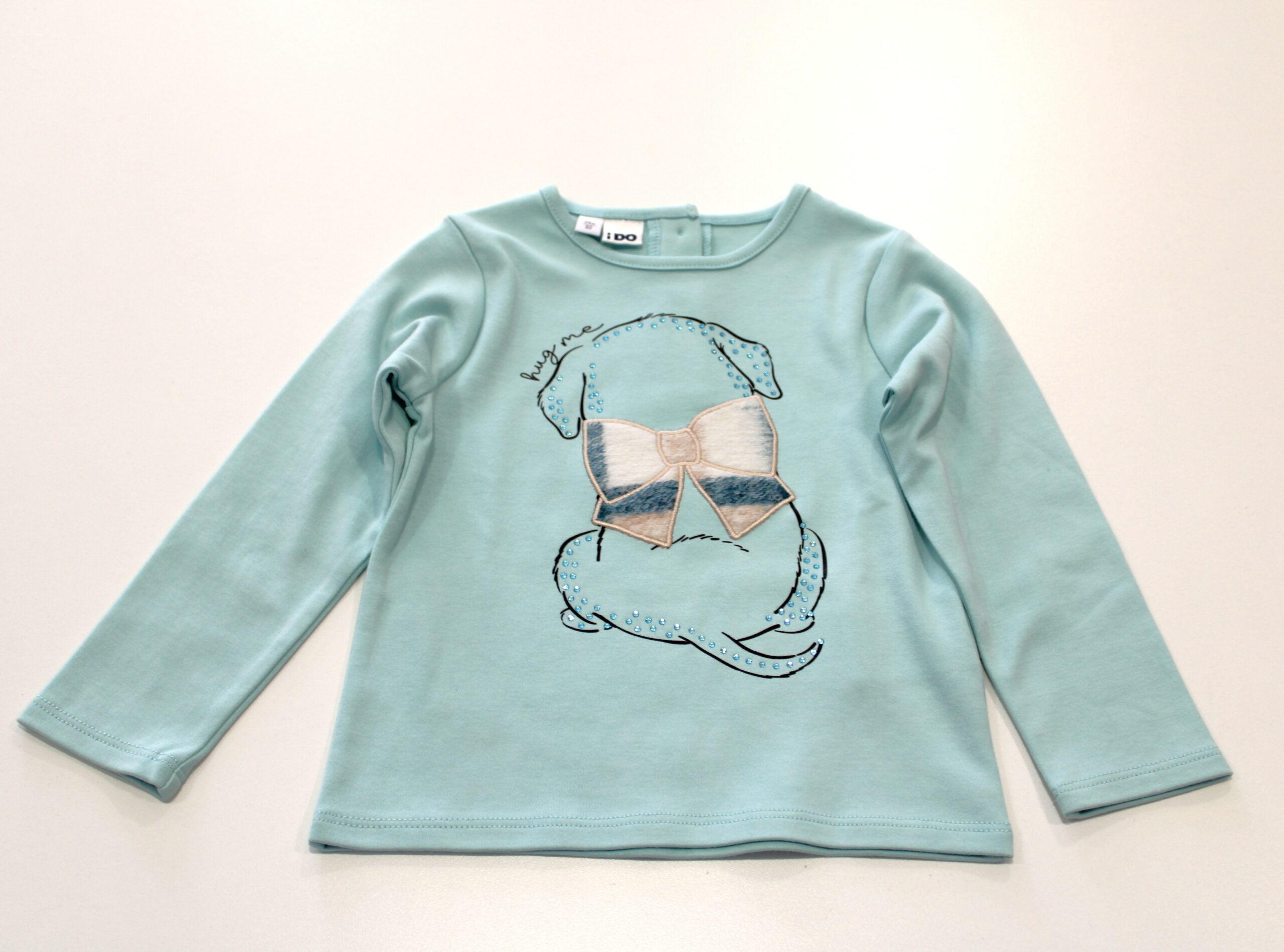 Conjunto de camisola de manga, com pormenor de cãozinho na frente. Calção saia ao xadrez.