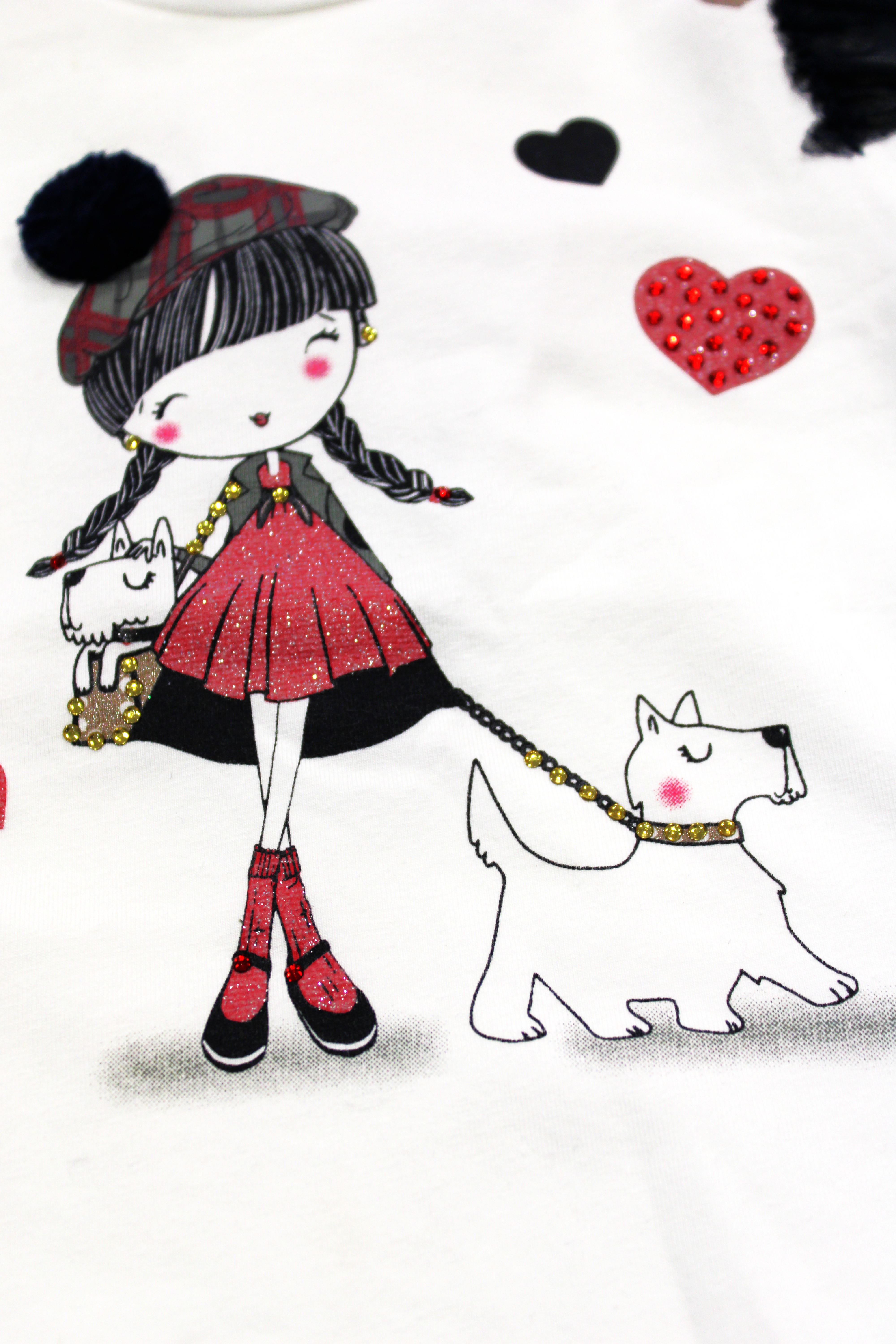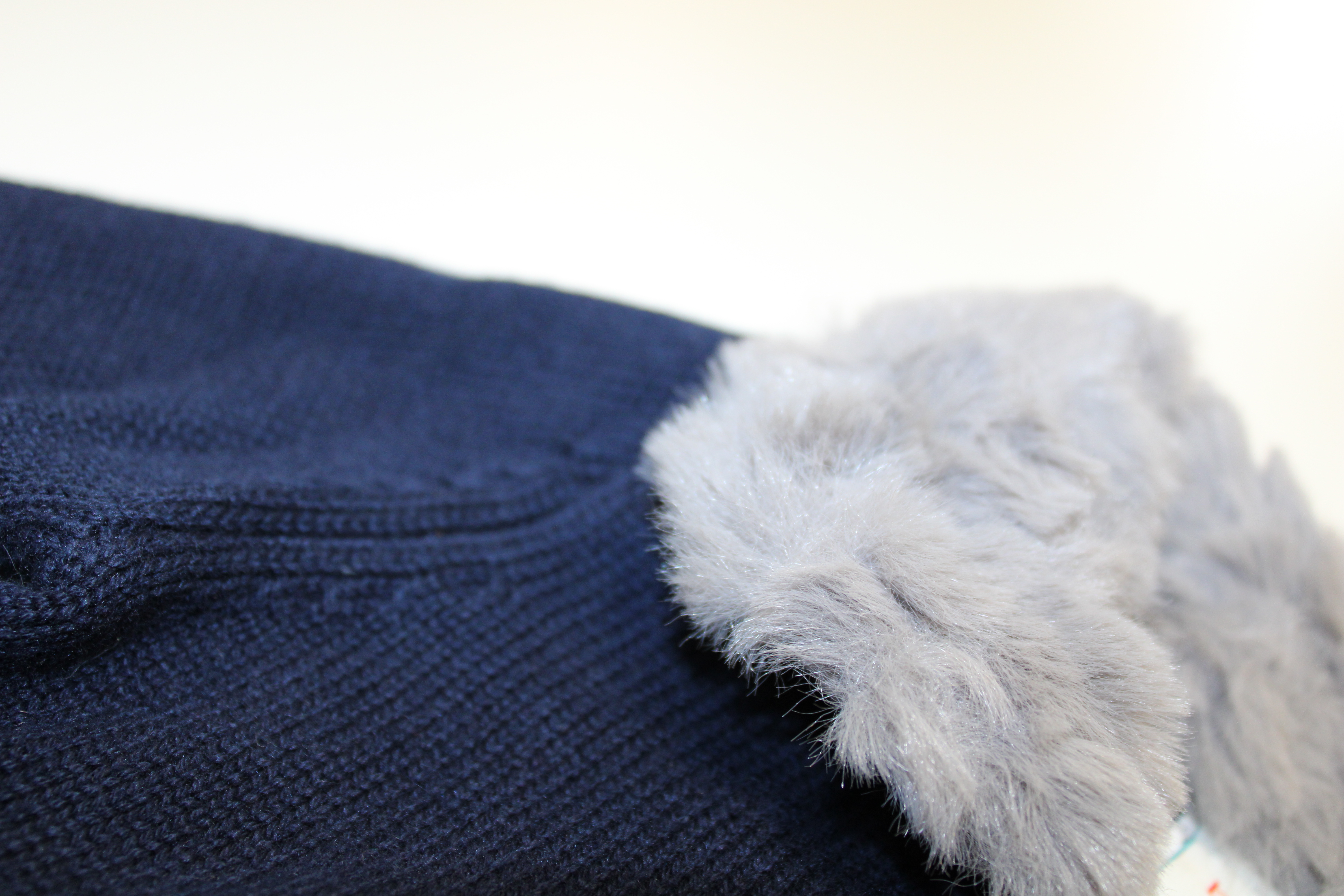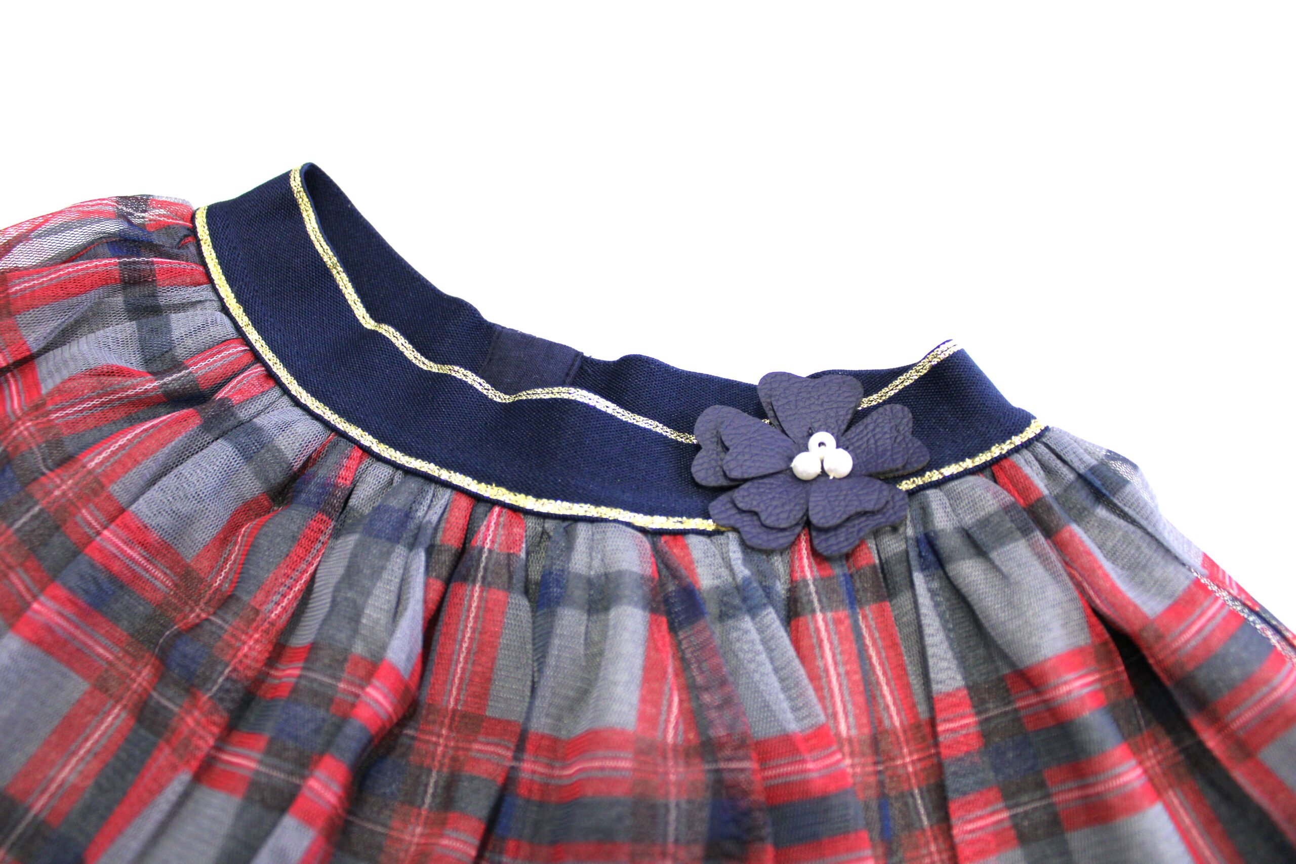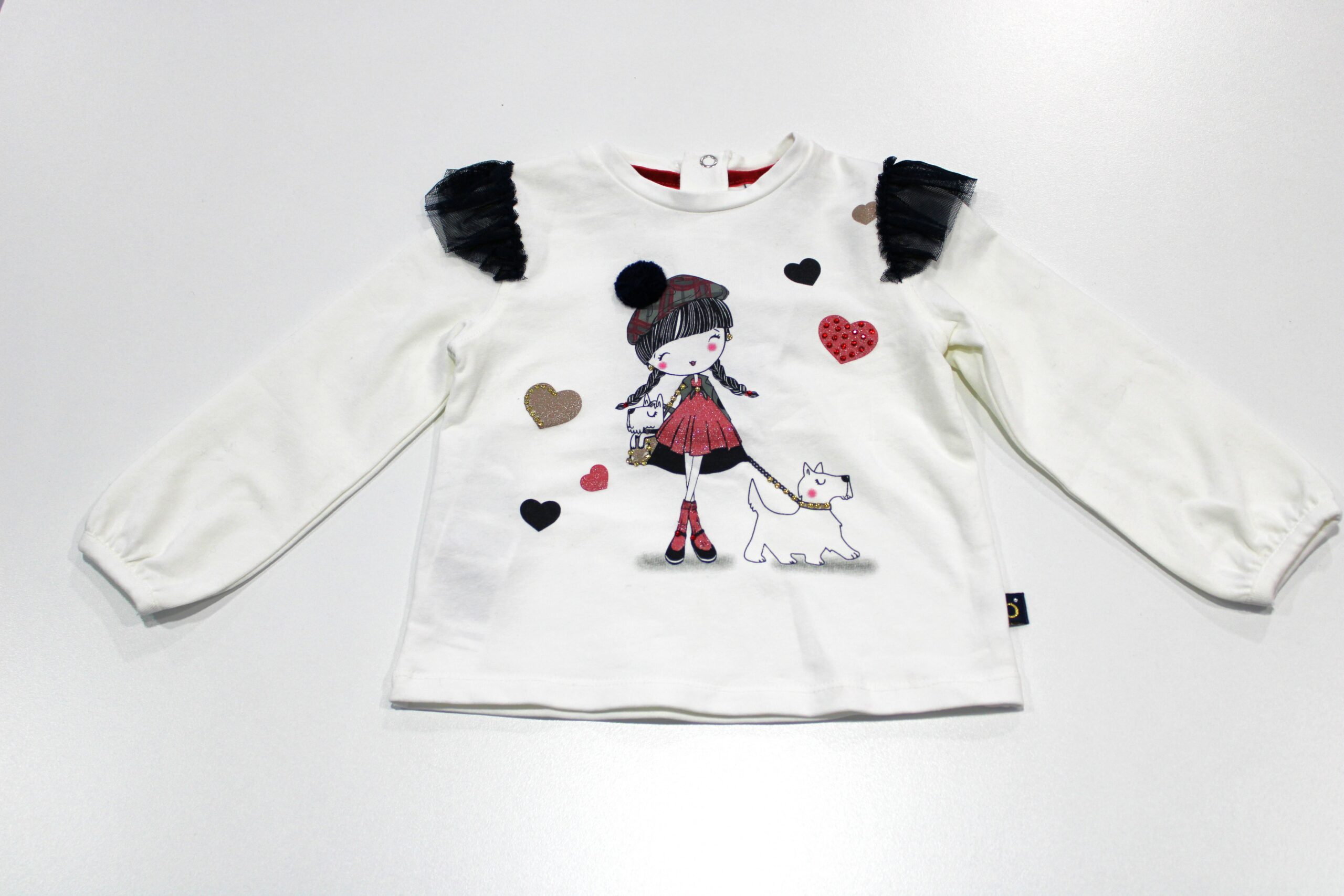 Conjunto de Casaco de malha, camisola de algodão, saia de tule e collant.