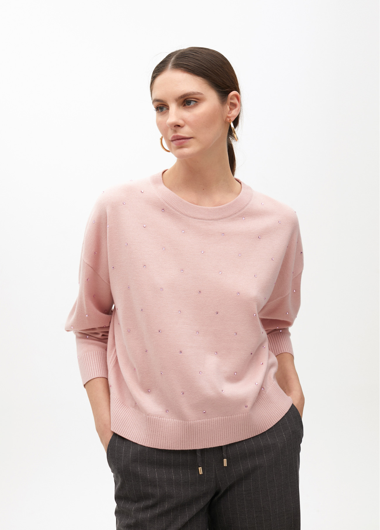 Camisola de malha com brilhos no mesmo tom