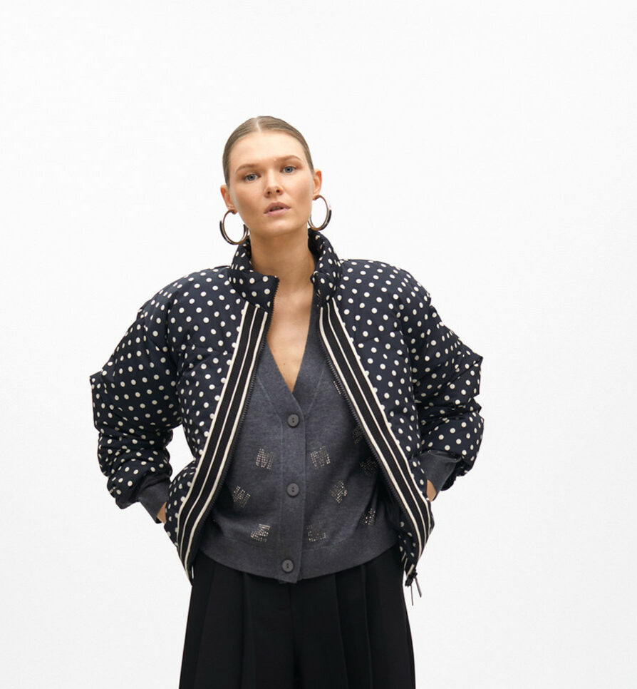 Quispo com estampa de bolas em tom cru.