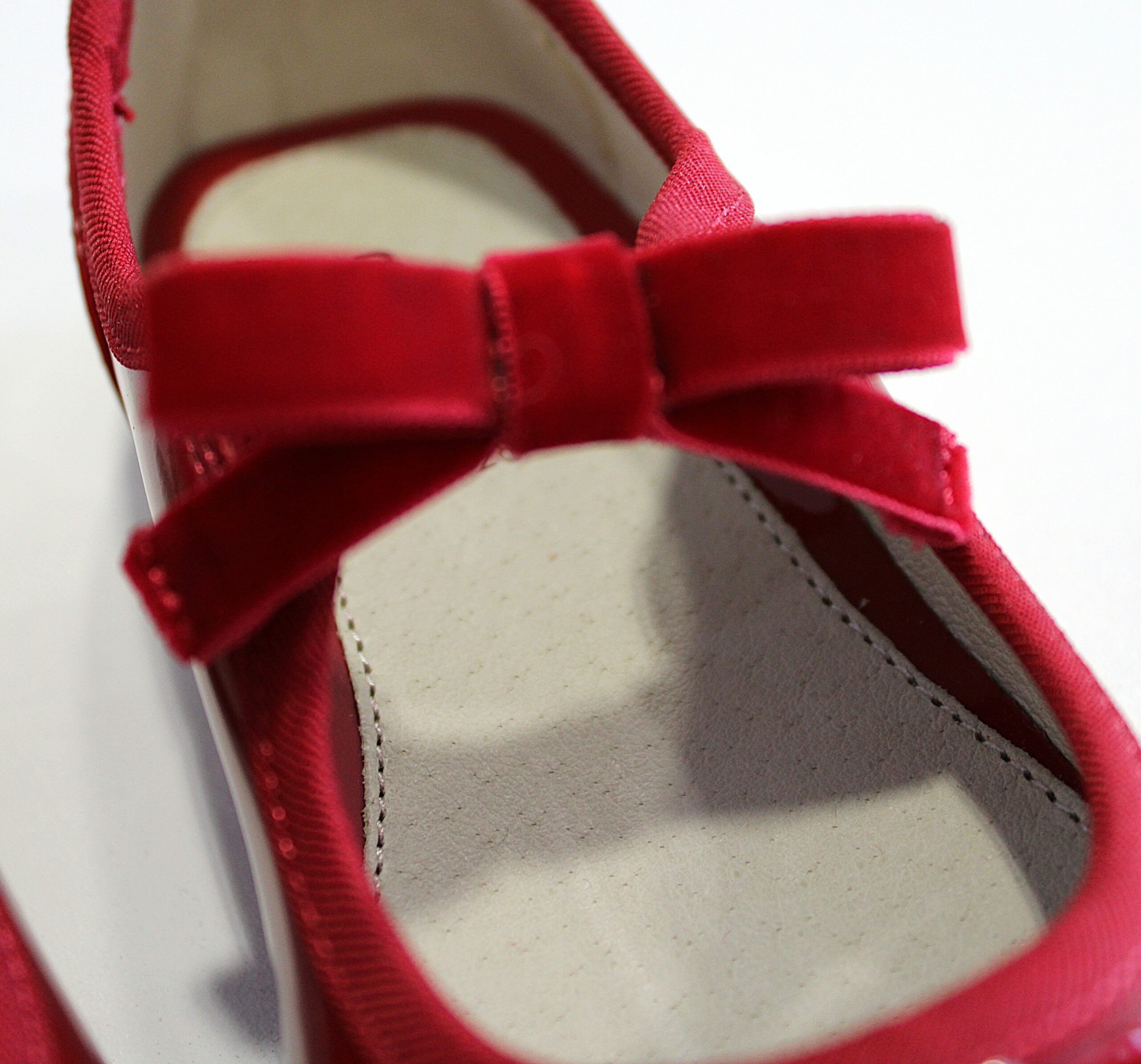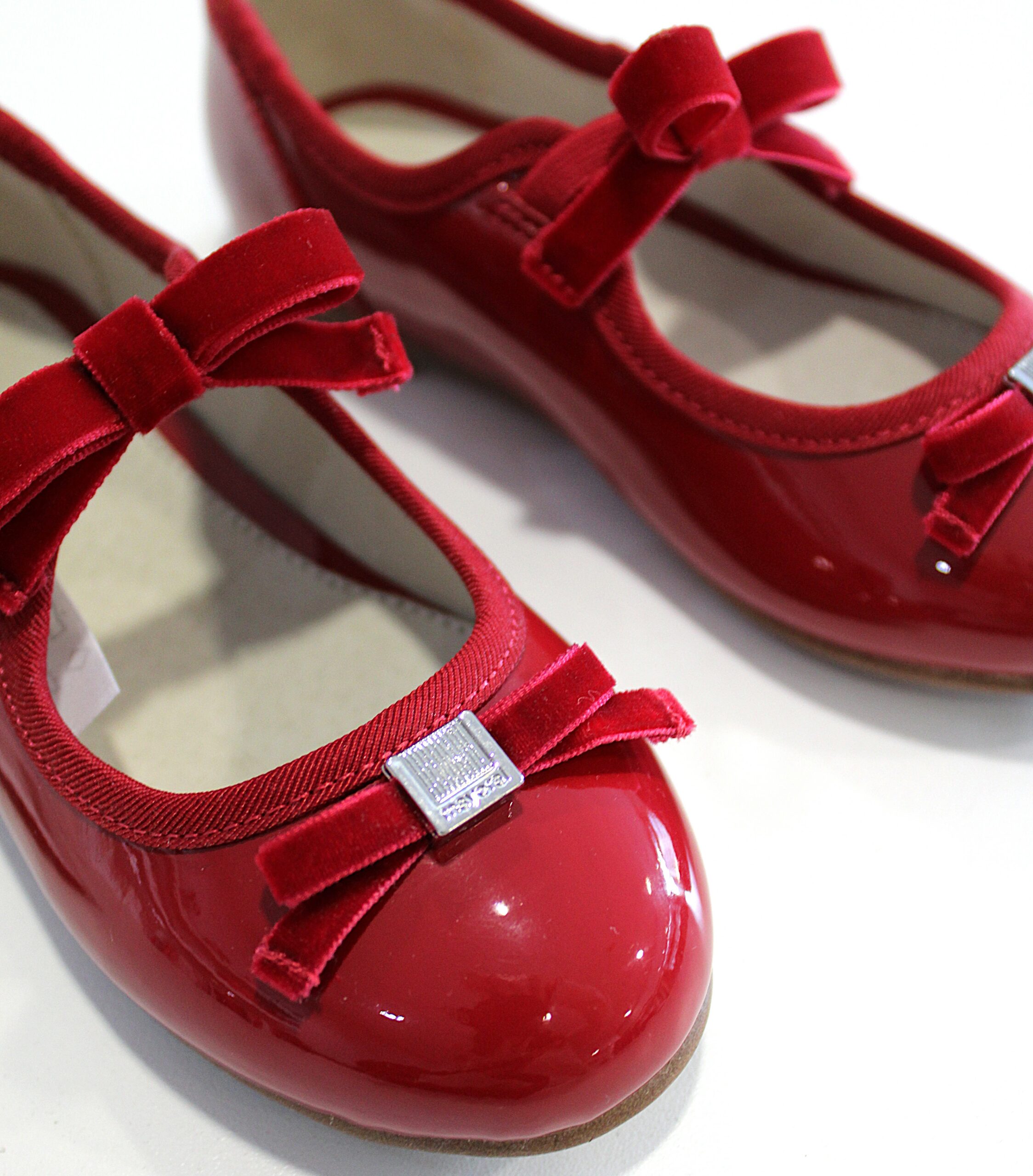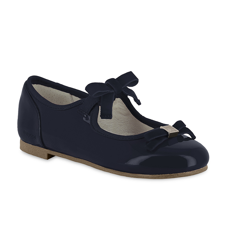 Sabrinas de verniz com elástico no laço.