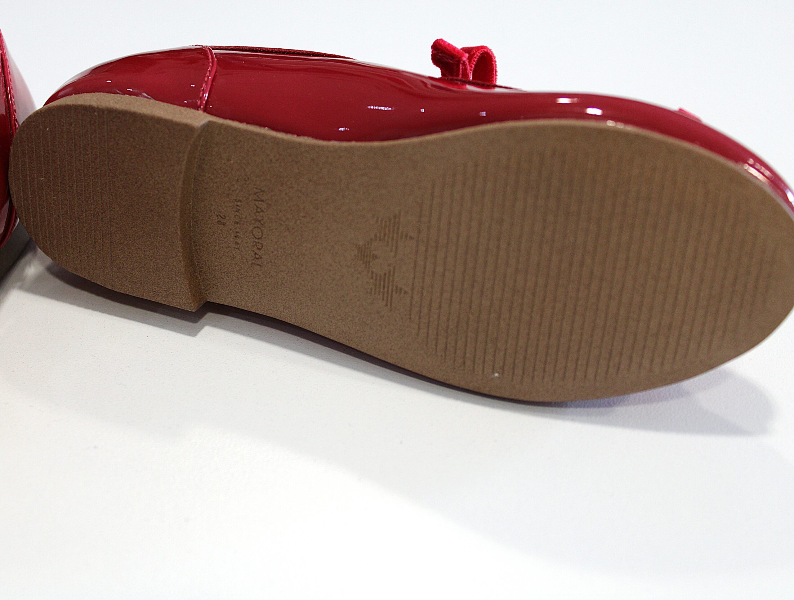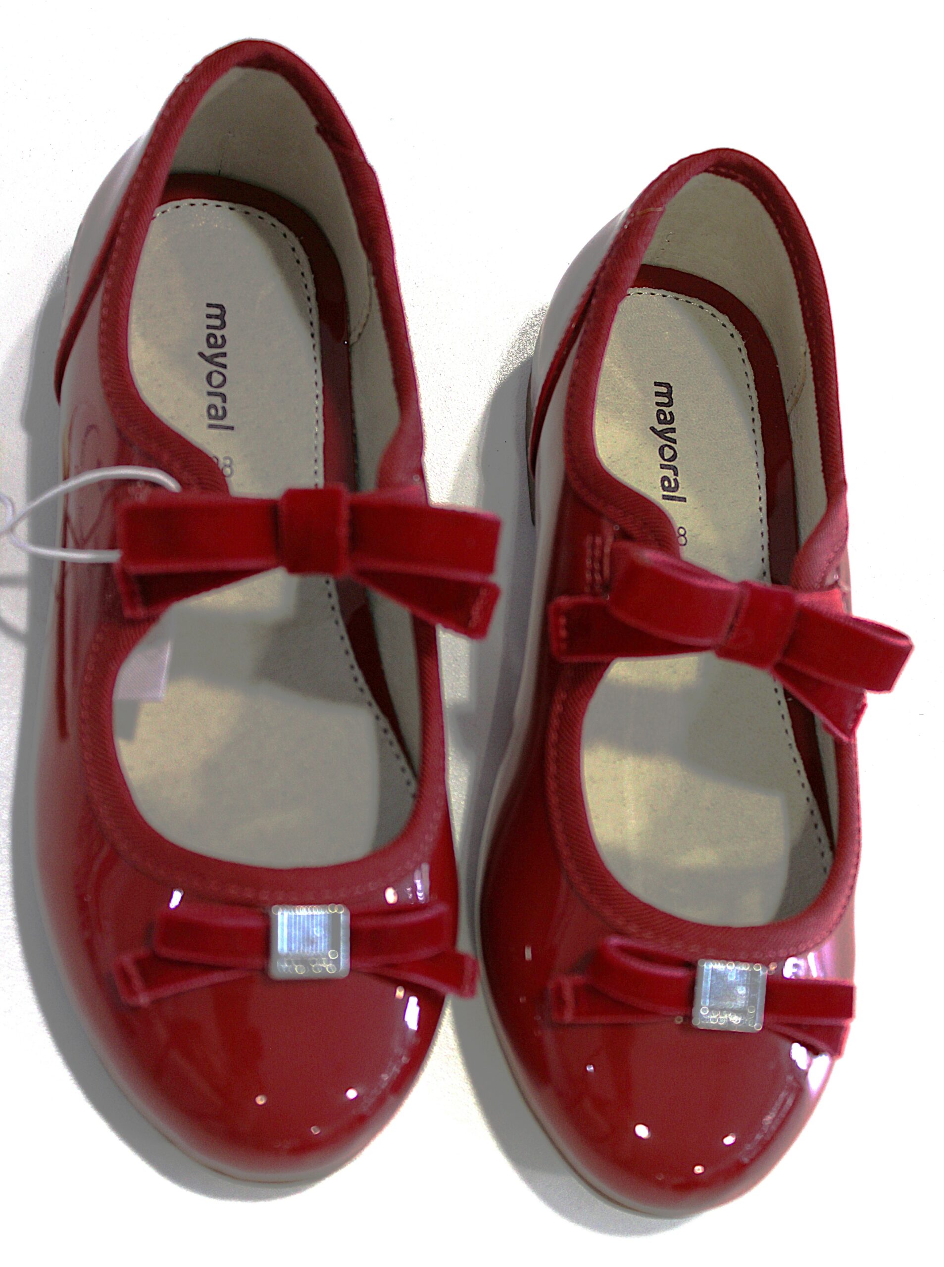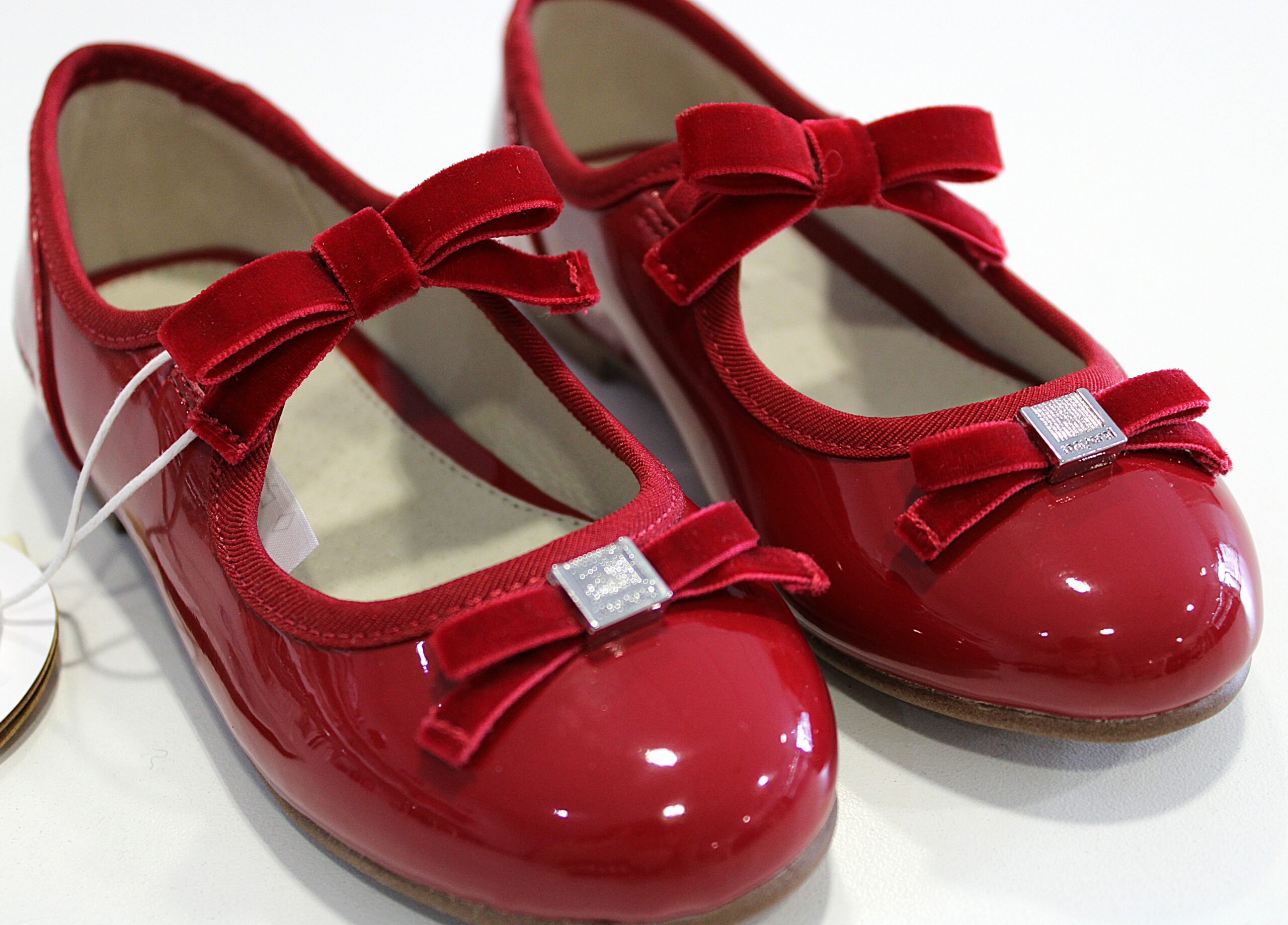 Sabrinas de verniz com elástico no laço.
