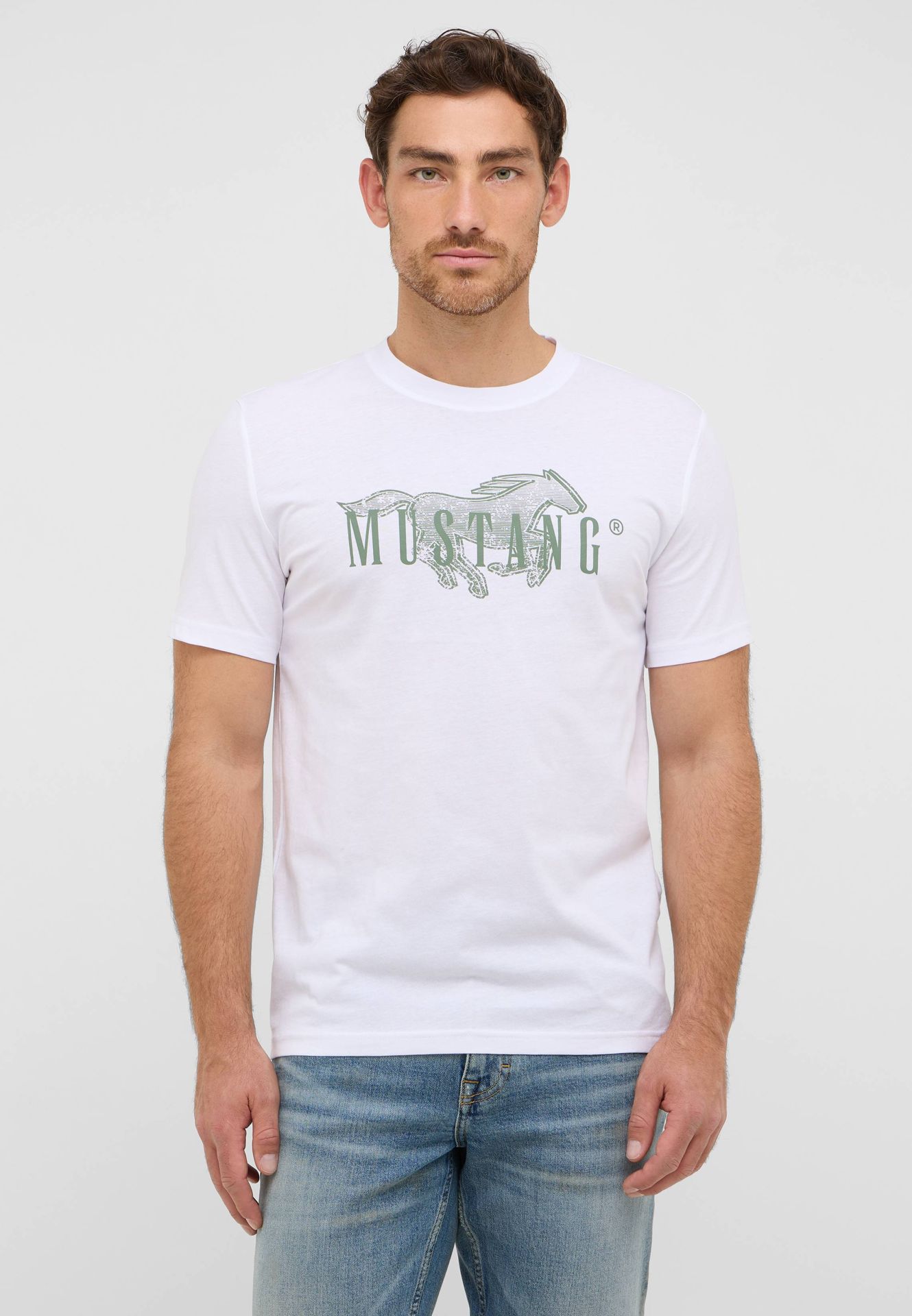T-shirt de algodão pormenor estampado verde com cavalo e letras